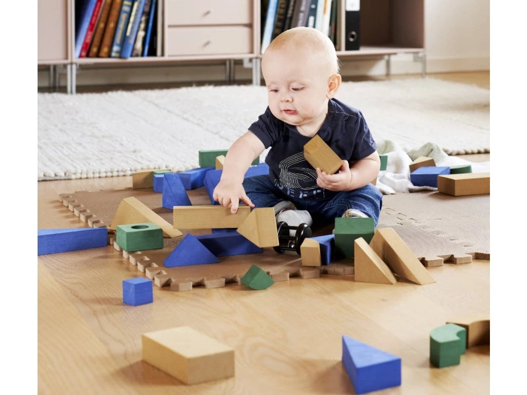 Pěnová podlaha je vyrobena z extra husté pěny tloušťky 1,4 cm, takže si na ní děti mohou hrát a bezpečně spadnout. Podložka izoluje plazící nebo batolící se dítě před chladem, hlukem a nárazem. Velmi vhodné přes dlažbu nebo plovoucí podlahu. Podložka může být alternativně sestavena také do čtvercové krabice. Pokud máte více podložek, můžete vytvořit další krabice, které dítěti mohou skládat. Spousta možností pro aktivní hru.