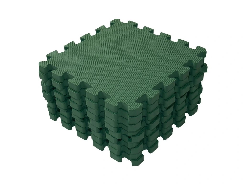 Vynikající pěnová puzzle hrací podlaha od Baby Danu v tmavě zelené barvě, která ozdobí dětský pokojíček. Balení obsahuje celkem 9 kusů dlaždic, každá 30 x 30 cm.