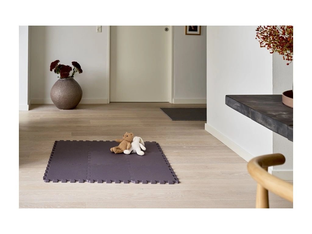 Vynikající pěnová puzzle hrací podlaha od Baby Danu v jemně levandulové barvě, která ozdobí dětský pokojíček. Balení obsahuje celkem 9 kusů dlaždic, každá 30 x 30 cm.