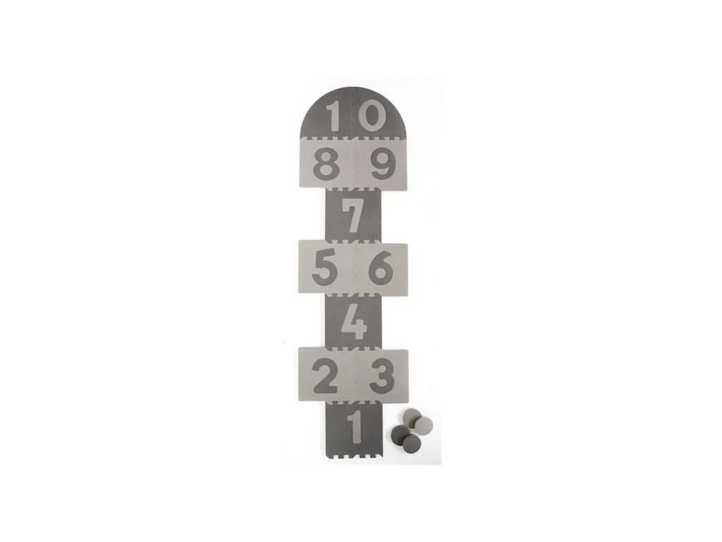 Klasický skákací panák vyrobený jako měkká izolační pěnová podložka na hraní. Poslouží ideálně na mnoho a mnoho hodin hraní, kdy si malé dítě může procvičovat rovnováhu a motorickou koordinaci při plazení, chůzi nebo skákání po podložce. Z podložky můžete také odstranit čísla nechat dítě, aby našlo a spojilo jednotlivé kusy se správným číslem. Toto je další zábavný způsob, jak si procvičit čísla od 1 do 10 a zároveň jemnou motoriku.