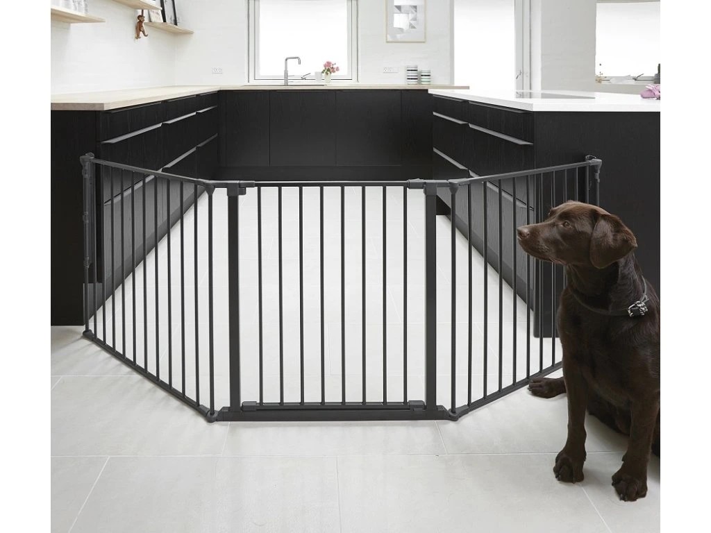 S naším nástěnným ohradníkem pro psy se můžete o svého čtyřnohého přítele dobře postarat tak, že mu doma vytvoříte vhodný prostor. Tato psí branka je ideální pro široké a nepravidelné dveře, schodiště, kamna a jako rozdělovače místnosti. Projít psí brankou je snadné, protože má dvířka široká 54cm, která můžete otevřít z obou stran jednou rukou a při sestavování ji můžete umístit, kamkoli budete chtít. Uprostřed nebo na jednu ze stran. To záleží jen na vás.