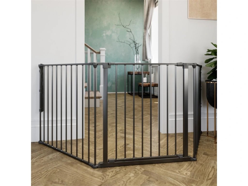 Zábrana DogSpace Max pro psy pokrývá jakýkoli otvor v rozmezí 90-223 cm - ale pokud chcete, můžete ji prodloužit pomocí přídavných dílů (dodávají se v délkách 33 cm a 71 cm (prodávají se samostatně)). Jak dlouhou zábranu pro domácí mazlíčky DogSpace Max potřebujete? Můžete si ji vytvořit tak dlouhou, jak chcete.