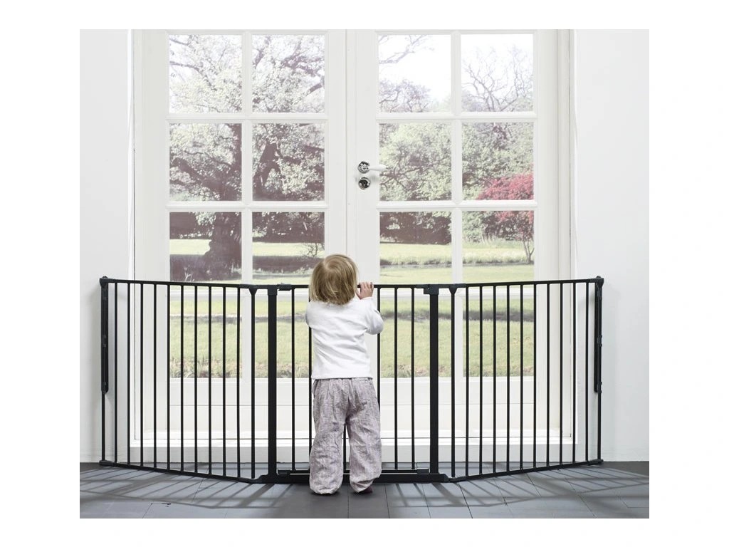Parametry, normy, technické údaje: - Odpovídá chemickému testu EN 71–3. - Čistá hmotnost 9,41 kg - Výška zábrany 71 cm - Pro minimální otvor 90 cm - Pro maximální otvor 225 cm - Vyrobeno z kovu. - Barva černá. - Vyhovuje nové normě EN 1930:2011 - vzdálenost mezi šprušlemi 5,5cm - šířka průchozích dvířek 54cm - Made in Denmark. Rozměry balení: 71 x 75 x 3,5 cm.