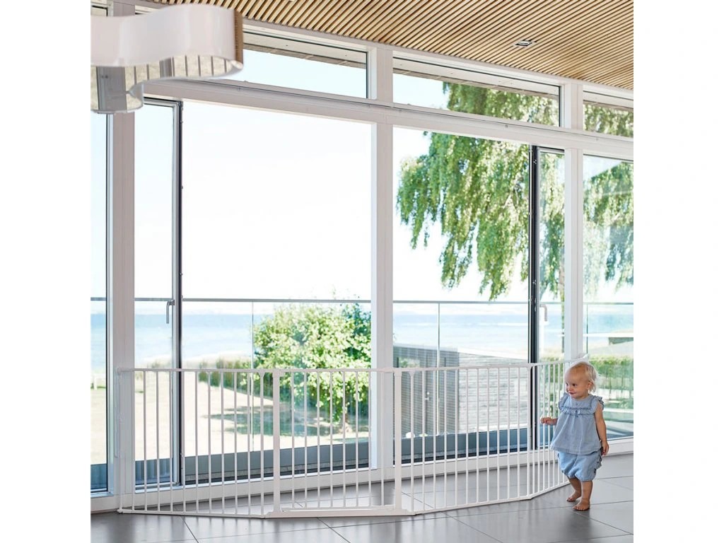 Parametry, normy, technické údaje: - Odpovídá chemickému testu EN 71–3. - Čistá hmotnost 11,6 kg - Výška zábrany 71 cm - Pro minimální otvor 90 cm - Pro maximální otvor 350 cm - Vyrobeno z kovu. - Barva bílá. - Vyhovuje nové normě EN 1930:2011 - vzdálenost mezi šprušlemi 5,5cm - Made in Denmark. Rozměry balení: 78 x 78 x 12 cm.